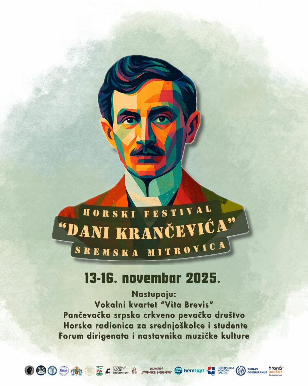 Sremska Mitrovica – Tradicionalni horski festival„Dani Krančevića“ biće održan od 13. do 16. novembra 2025. u Sremskoj Mitrovici. Manifestacija neguje umetničko nasleđe Isidora Kranjčevića i okuplja publiku koja voli horsku muziku, pedagoge i mlade pevače iz regiona.