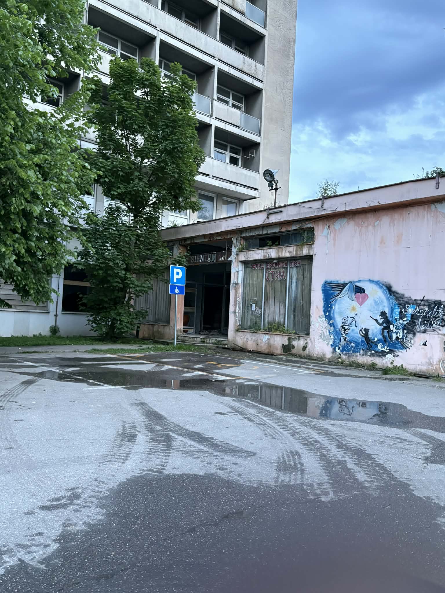 Hotel „Sirmium“, nekada jedan od prepoznatljivih objekata u centru Sremske Mitrovice, već duže od dve decenije propada. Danas je reč o ruiniranoj zgradi bez stalnog nadzora, što je i ranije dovodilo do incidenata.