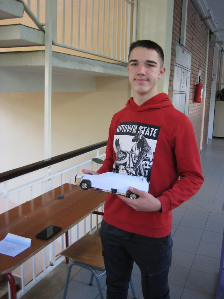 Učenik osmog razreda, Uroš Teodorović, osvojio je treću nagradu u disciplini koja obuhvata test znanja i gađanje cilja modelom automobila u okviru kategorije auto-modelarstva.